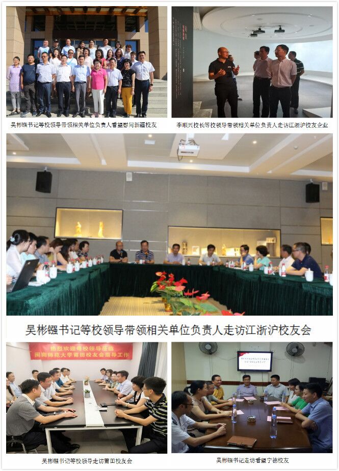 6月,紀委書記黃來淵利用開會期間帶領相關部門負責人走訪考察了福州圣安琴舞蹈、福建海西金控有限公司等校友企業,并與福州校友代表交流座談。7月中旬,何紹福副校長帶領校友辦一行走訪三明校友會,與三明校友代表交流座談。7月中旬,吳彬鏹、李順興、鐘發亮、肖慶偉、蔣一婷、黃來淵、林致遠等校領導帶領相關單位負責人在復旦大學培訓學習期間,參觀校友企業——上海木文化博物館和藝素教育,看望走訪了江浙滬校友會并召開座談會。