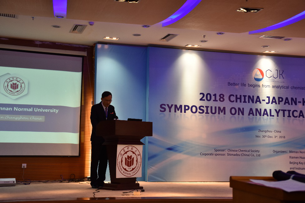 12月1日上午,由中國化學會主辦,閩南師范大學、廈門華廈學院和微量分析測試方法與儀器研制北京市重點實驗室(清華大學)共同承辦的2018年中日韓分析化學研討會(2018 China-Japan-Korea Symposium on Analytical Chemistry)在我校開幕。中日韓三國分析化學領域的180多位著名學者參加了本次會議,大會開幕式由我校副校長張龍海主持。