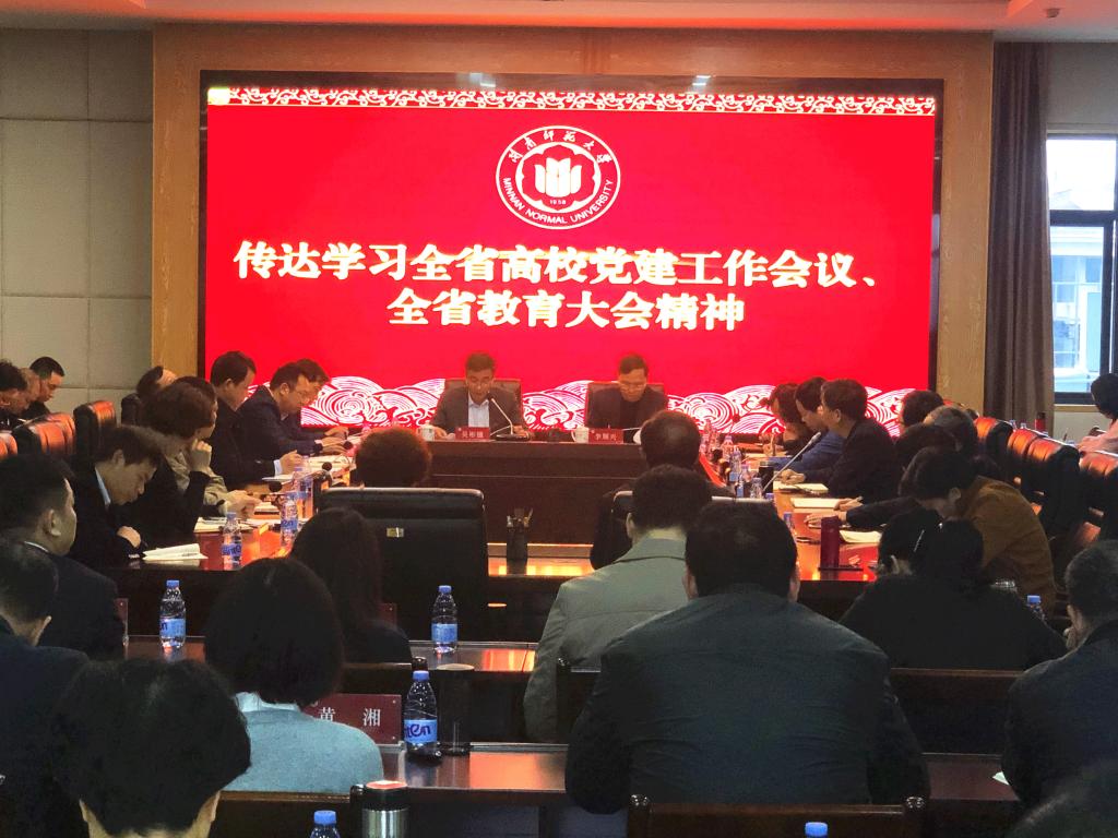 校黨委書記吳彬鏹主持會議,并傳達了省委書記、省委教育工作領導小組組長于偉國、省長唐登杰、教育部副部長鐘登華、省委常委周聯清在全省教育大會上的重要講話精神,以及省委常委周聯清、副省長楊賢金在全省高校黨的建設工作會議上的講話精神和具體要求。