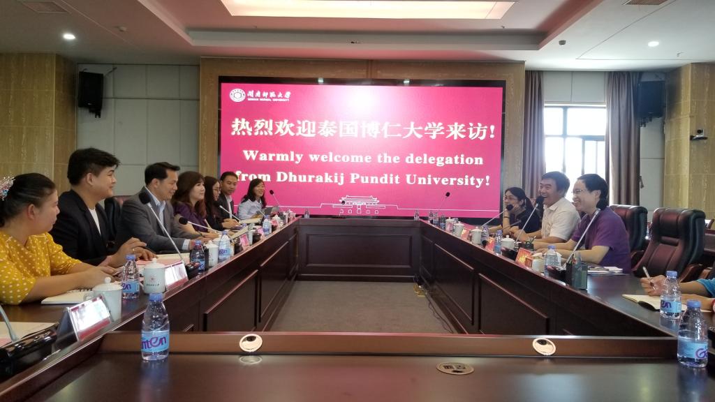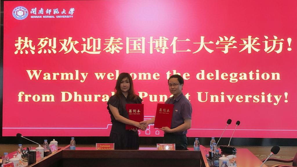 林致遠介紹了我校的基本情況、學科建設和辦學優勢。他表示,閩南師范大學堅持開放辦學,積極引進國外先進教育資源,推動師生赴國外學習交流。希望與泰國博仁大學深化合作,促進師生及科研交流。雙方就師資互派、碩博士連讀、交換生游學夏令營、博士師資聯合培養、海外留學生招生、科研合作等項目展開深入細致的溝通與交流,并簽訂合作備忘錄。雙方表示,今后兩校將加強溝通與交流,建立穩定長效的合作關系,實現優勢互補,進一步推動項目落地。
