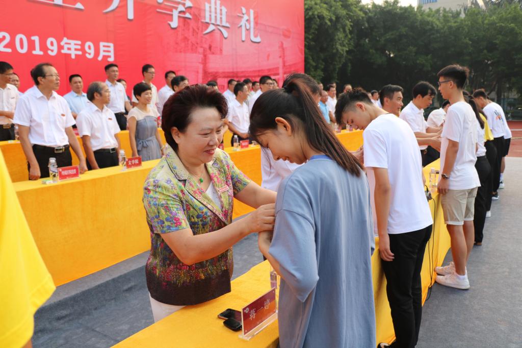 開學典禮上還舉行新生入學校徽佩戴儀式,校領導分別為本科新生代表和研究生新生代表佩戴?;?。最后,典禮在熱烈的掌聲中圓滿結束。