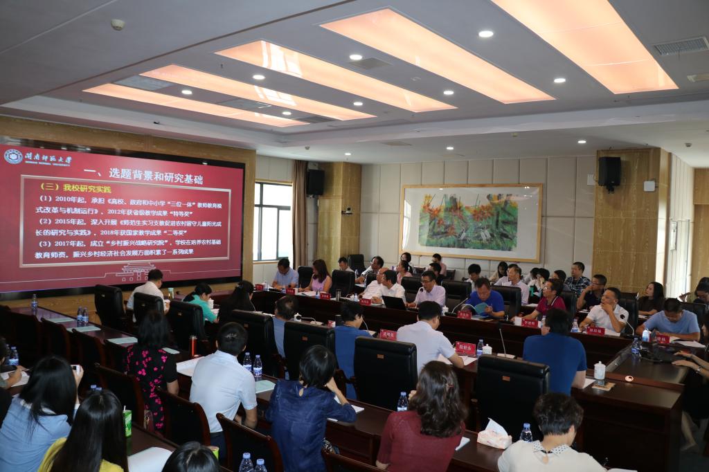 校黨委副書記肖慶偉首先介紹了我校申報《中國教育扶貧的現狀、問題與對策研究》項目的背景,指出該項目是學校貫徹落實習近平總書記關于教育的重要論述,扣緊國家實施精準扶貧戰略,全面建成小康社會的背景,深入總結黨的十八大以來關于教育扶貧的理論研究成果和典型實踐經驗,研究探索新時代教育精準扶貧的中國方案和模式而申報的。隨后,項目總負責人、校黨委書記吳彬鏹同志從項目的選題背景和研究基礎、研究的理論價值和實踐意義、總體框架和主要內容、研究思路和方法技術、研究重難點和創新點、計劃進度和經費安排、組織實施和任務分工等方面匯報項目開題報告內容,并就項目研究人員、經費預算和預期成果的適當調整作了說明。
