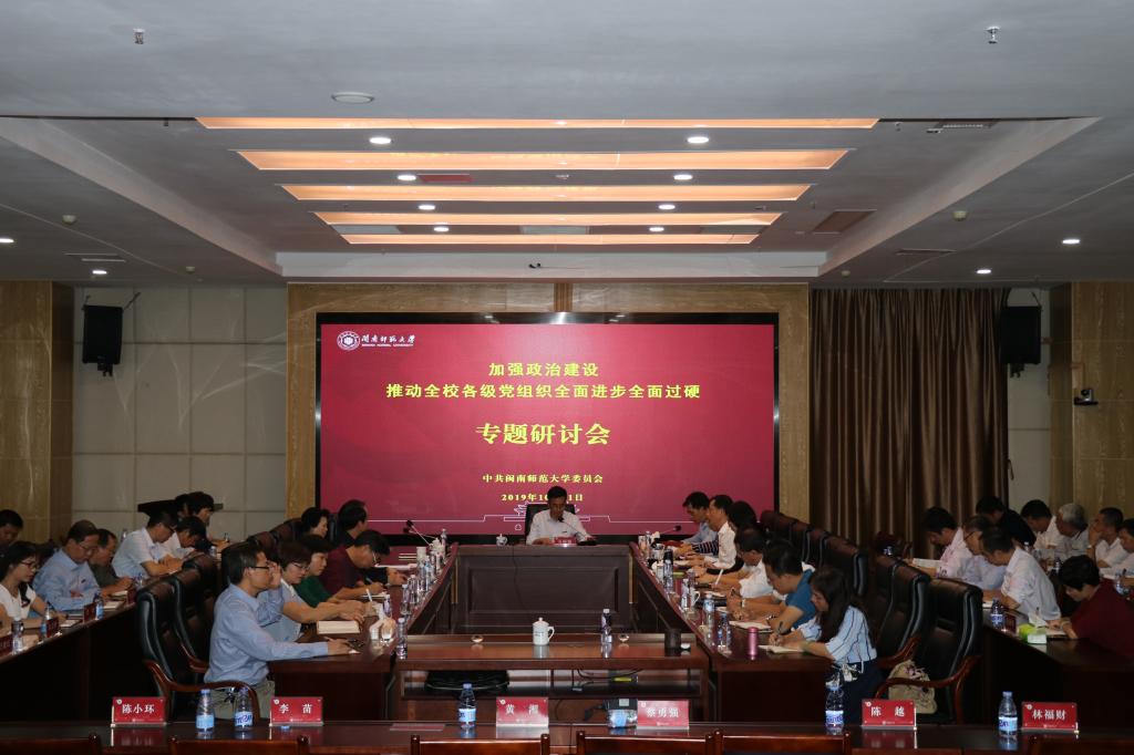會上,校黨委副書記鐘發亮,校黨委常委、紀委書記黃來淵分別圍繞研討主題作重點發言。鐘發亮以《加強高校黨的政治建設,永葆社會主義高校政治本色》為題,談了自己的體會和思考。他指出,高校是黨領導下的學校,是新時代中國特色社會主義學校,必須高舉“思想旗幟”,把穩方向之舵,將黨的政治建設始終擺在首位、貫穿其中、體現作用。黨員干部要增強“政治自覺”,強化擔當之責;要堅持“政治體檢”,凈化政治之魂;要始終將“為人民服務”放在首位,凝聚辦學之力;要注重“內外兼修”,筑牢能力之本,在選人用人中突出政治能力、在示范引領中詮釋政治能力、在實踐工作中提升政治能力。