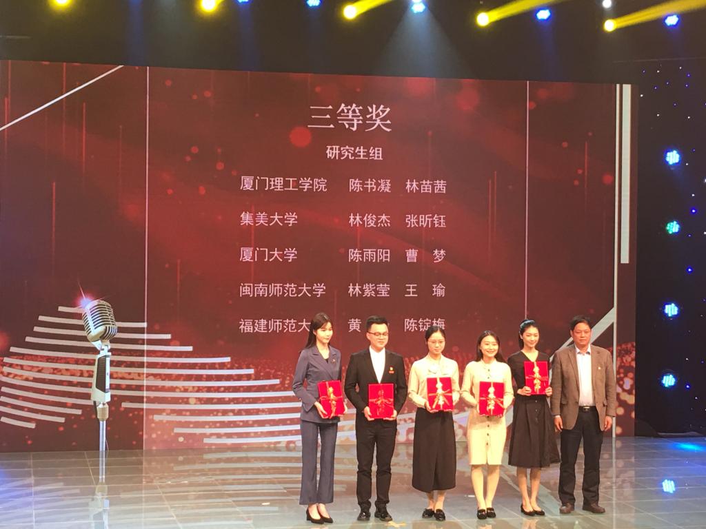 近日,由省委教育工委主辦,福建教育電視臺、福建省高校思想政治理論課教學(xué)指導(dǎo)委員會、福建省高校網(wǎng)絡(luò)思想政治工作中心承辦的第三屆“馬克思主義能夠給予我們什么”主題征文和微演講比賽在福建師范大學(xué)舉行。我校數(shù)學(xué)與統(tǒng)計學(xué)院陳明老師指導(dǎo),文學(xué)院林紫瑩和數(shù)學(xué)與統(tǒng)計學(xué)院王瑜組成的團(tuán)隊以《立鴻鵠志、做追夢人》為題,在主題征文和微演講比賽兩個環(huán)節(jié)表現(xiàn)突出,獲得研究生組三等獎。