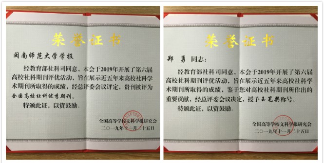 據悉,全國高等學校文科學報研究會是1988年經中華人民共和國教育委員會和新聞出版署批準成立,由中華人民共和國民政部注冊的全國高等學校文科學報工作者的群眾性學術團體,屬國家一級學會。《閩南師范大學學報(哲學社會科學版)》一直以來堅持政治性與學術性、規范性與創新性相結合,科學打造品牌欄目,不斷提高期刊質量,此次被評為“全國高校社科優秀期刊”,是學術界和期刊界對《閩南師范大學學報(哲學社會科學版)》辦刊質量和水平的肯定。