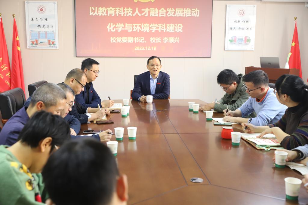 隨后,李順興結合學校發展實際,圍繞學科建設、學術研究、人才培養等三個方面作重點闡述。他強調,要堅持閩南文化和教師教育協同創新的辦學特色,深度發掘閩南文化與化學、環境專業的交叉點,做好長遠規劃,打造具備獨特性、不可替代性的學科,爭取相關專業領域的話語權。要注重科學研究的前瞻性、戰略性需求導向,既要注重原始創新,也要關注現實意義,既要長期積累沉淀,也要避免盲目跟風,推動學術價值、社會效應和經濟效應的實現和轉化。要詳細區分研究型、應用型、復合型人才的特點和培養模式,針對不同人才類型的培養需求,重構培養機制,進一步推動科教融合和產教融合。