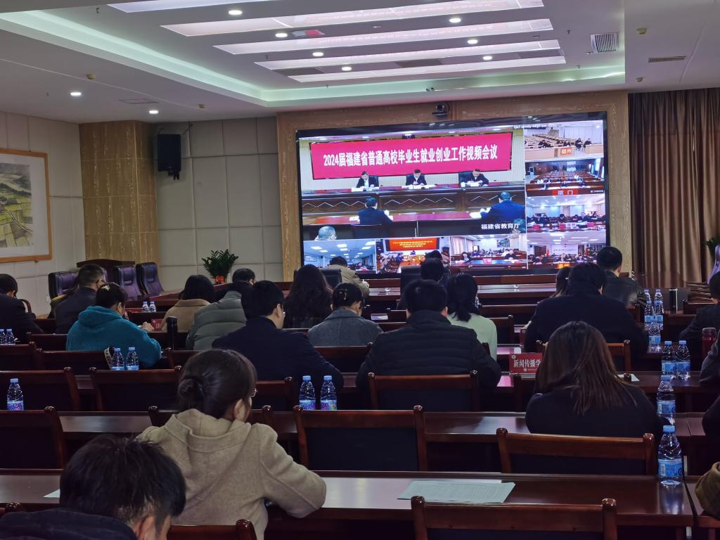 會前,全體參會人員收聽收看了福建省2024屆普通高校畢業生就業創業工作視頻調度會。