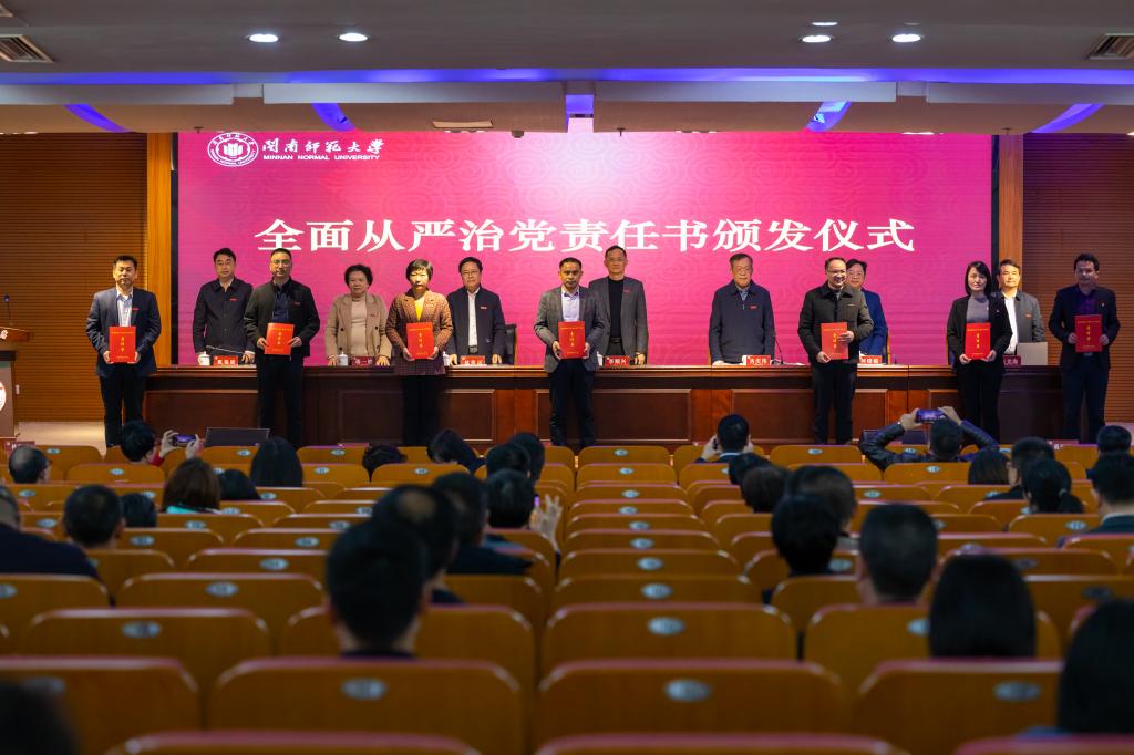 會上,校領(lǐng)導還向二級單位黨政主要負責人頒發(fā)了《2024年閩南師范大學全面從嚴治黨責任書》,并與全體中層干部一同觀看了警示教育片。