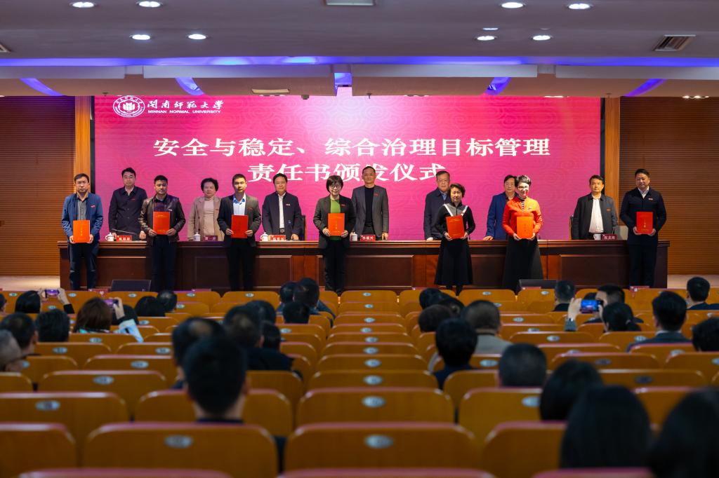 會上,校領導還向機關教輔單位代表、二級學院代表頒發(fā)了《2024年閩南師范大學安全與穩(wěn)定、綜合治理目標管理責任書》。