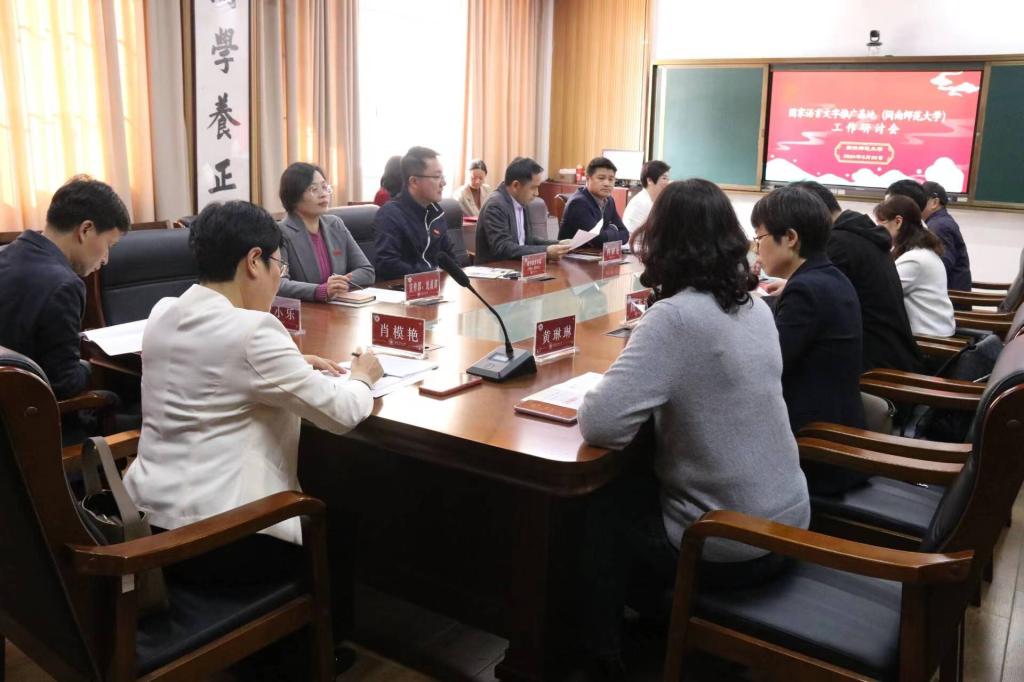 隨后,與會(huì)人員回顧了2023年度基地的工作成效,并就2024年度工作計(jì)劃展開(kāi)討論。會(huì)議指出,基地工作與科學(xué)研究、社會(huì)服務(wù)密切相關(guān),要更好地發(fā)揮語(yǔ)言的工具性,拓寬語(yǔ)言文字推廣工作的外延,加大宣傳力度,擴(kuò)大基地的影響力。下一步,基地工作將圍繞服務(wù)鑄牢中華民族共同體意識(shí)、落實(shí)立德樹(shù)人根本任務(wù)、促進(jìn)兩岸語(yǔ)言文化交流、聚焦國(guó)家通用語(yǔ)言文字推廣普及等四個(gè)方面展開(kāi),努力推動(dòng)基地品牌建設(shè)、講好基地故事,為國(guó)家語(yǔ)言文字推廣貢獻(xiàn)力量。