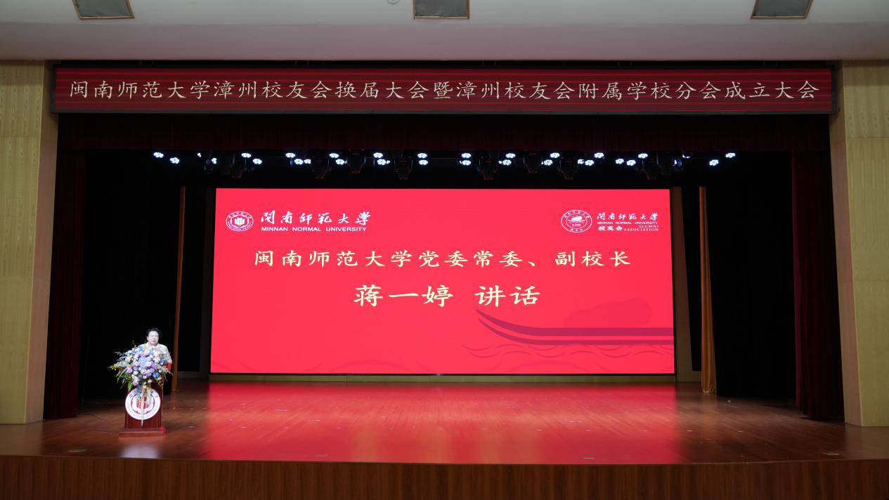 蔣一婷在致辭中代表母校和校友總會向新當選的漳州校友會和漳州校友會附屬學校分會的會長、副會長、秘書長、副秘書長以及理事們表示祝賀,對長期以來關心支持母校及附屬學校發展的校友們表示感謝。她表示,學校將不斷發揮教師教育辦學優勢,完善“幼兒園—小學—中學”附屬學校“UGS”協同創新體系,進一步凝聚起推動附屬學校發展的更大合力,將校友會建設得更好、更強、更溫暖。