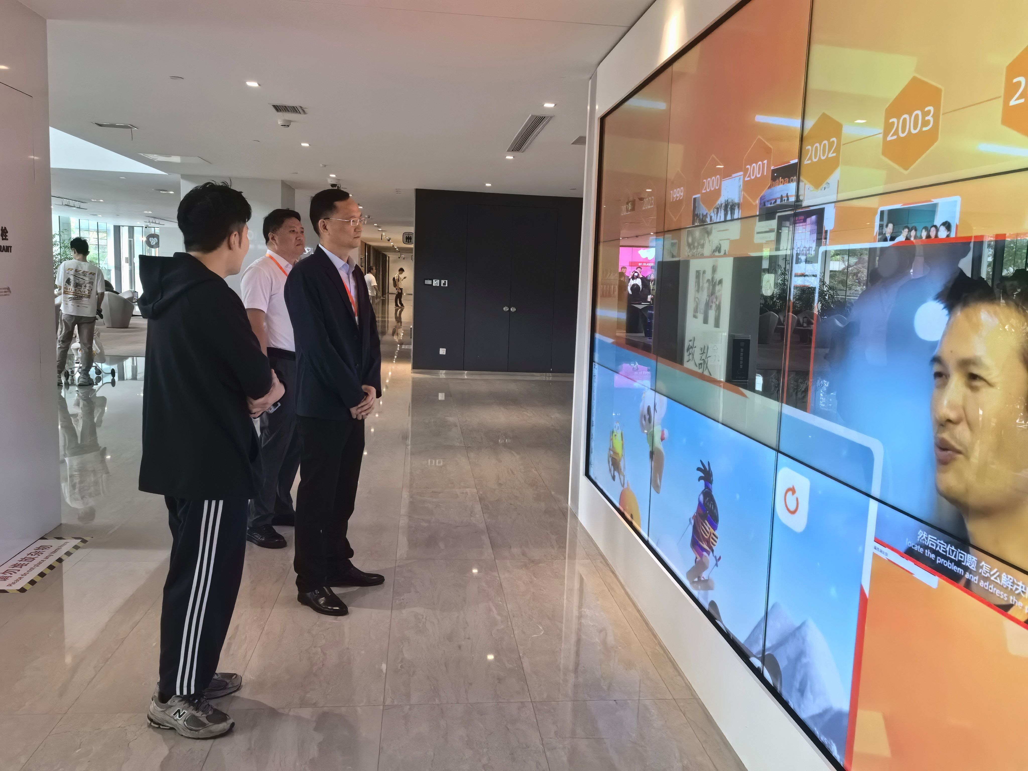 壹網壹創是國內首家在A股上市的電子商務服務商。在壹網壹創總部園區參觀時,2003屆旅游管理專業校友、公司創始人林振宇介紹了公司發展歷程、主要戰略客戶、業務模型及公司文化。李順興充分肯定了企業在“電商全域服務商+新消費品牌加速器”驅動模式下取得的成就。他指出,科技革命、產業變革以及數字轉型對高等教育結構布局和資源配置調整提出了緊迫要求,希望校友企業加強與母校的溝通聯系,參與學校人才培養改革,共同為推進數字經濟和實體經濟深度融合做出積極貢獻。