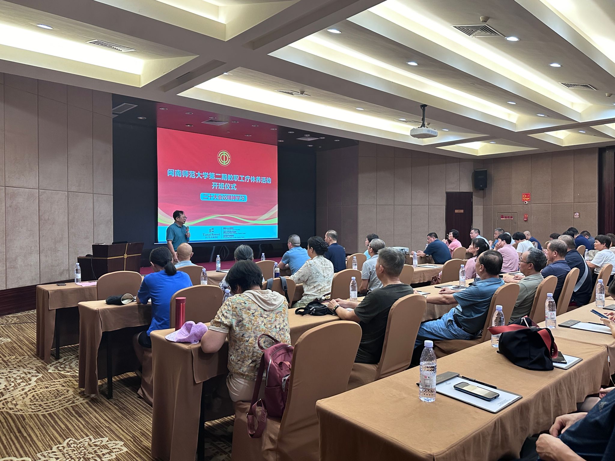 7月8日-12日,閩南師范大學第二期教職工療休養活動在永定天子溫泉療休養基地舉行。來自學校不同崗位的一線教職工99人參加本次活動。校黨委常委、副校長何紹福出席開班式并致辭。