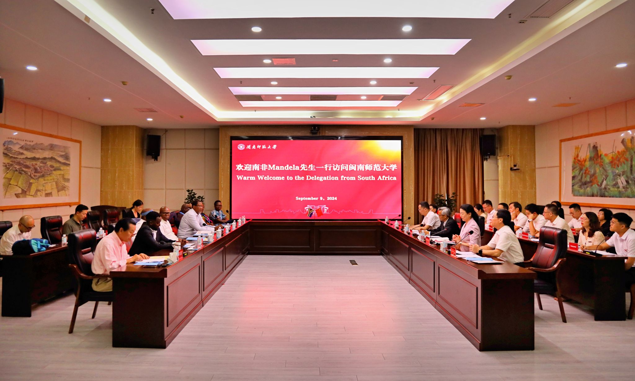 李順興代表學校對曼德拉一行到訪表示歡迎,介紹了閩南師范大學的辦學歷史、辦學現狀及對外交流合作基本情況。他表示,我校于今年5月入選教育部“中非大學聯盟”交流機制中方成員單位,將積極尋求與南非高校在教育人文領域開展合作,希望借此次代表團來訪,探討更多學術交流、來華培訓與留學、聯合培養與合作辦學等形式,拓展與南非高校的人文交流和教育合作,共同促進兩國教育資源的優化配置與創新能力提升。
