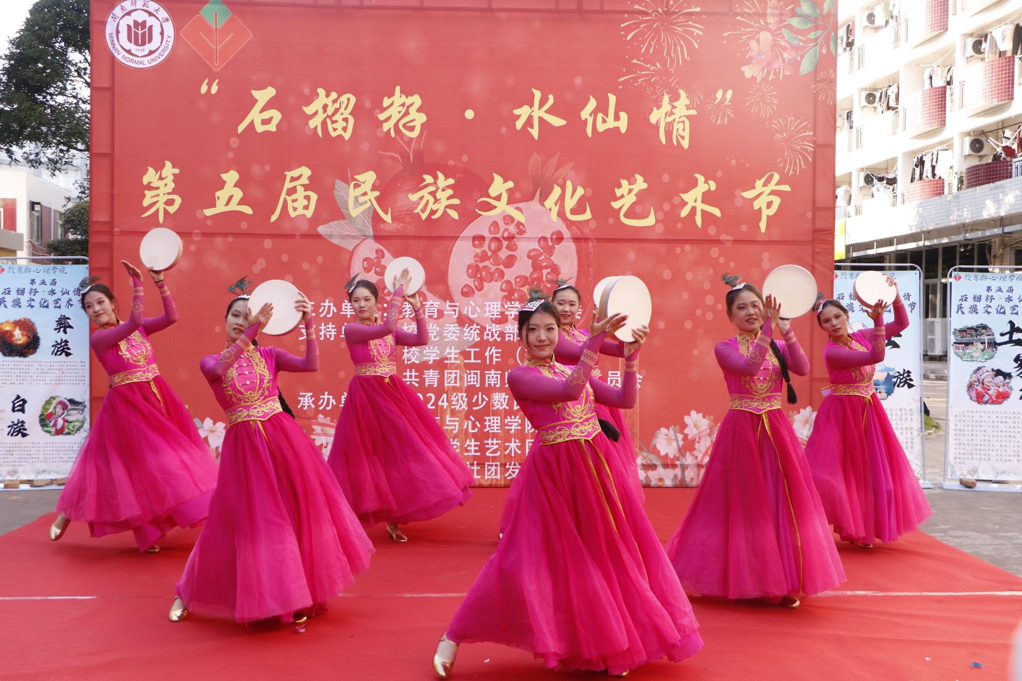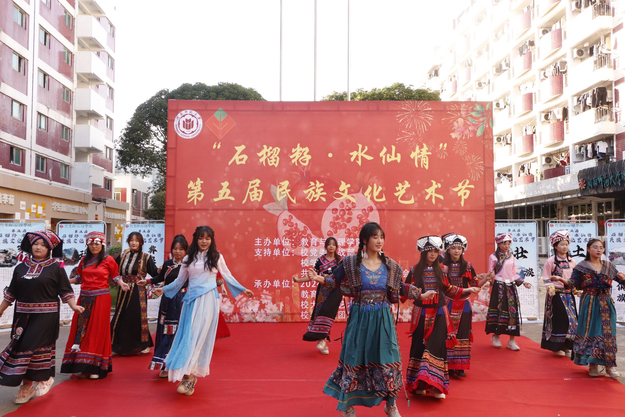 10月31日至11月7日,教育與心理學院在瑞京學生社區舉辦“石榴籽·水仙情”第五屆民族文化藝術節系列活動,包括少數民族預科班民族文化主題班會、民族文化游園、民族服飾展示、“石榴籽·水仙情”輔導員工作室揭牌、文藝匯演等。