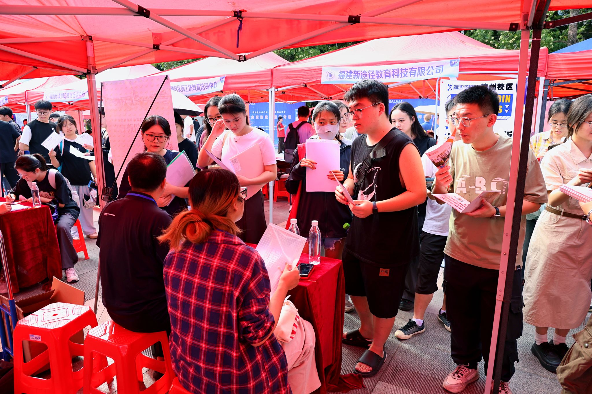 雙選會現(xiàn)場共有231家企業(yè)參加,提供732個優(yōu)質(zhì)崗位,計劃“招賢納士”6100余人,涵蓋了教師教育、生物科技、半導(dǎo)體和集成電路、軟件信息服務(wù)、智能制造、財會金融等行業(yè)領(lǐng)域,同時還設(shè)置了福州市促進高校畢業(yè)生就業(yè)創(chuàng)業(yè)政策宣傳、應(yīng)征義務(wù)兵政策宣傳、就業(yè)心理調(diào)適、求職簡歷義診、就業(yè)資助政策宣傳、職業(yè)生涯規(guī)劃咨詢與求職指導(dǎo)、公積金政策咨詢和指導(dǎo)等專區(qū),為學(xué)生提供全方面就業(yè)指導(dǎo)服務(wù)。校學(xué)生處、團委、“青馬工程”青年干部培訓(xùn)班(第三期)臨時黨支部黨員教師主動到現(xiàn)場為畢業(yè)生就業(yè)提供志愿服務(wù)。