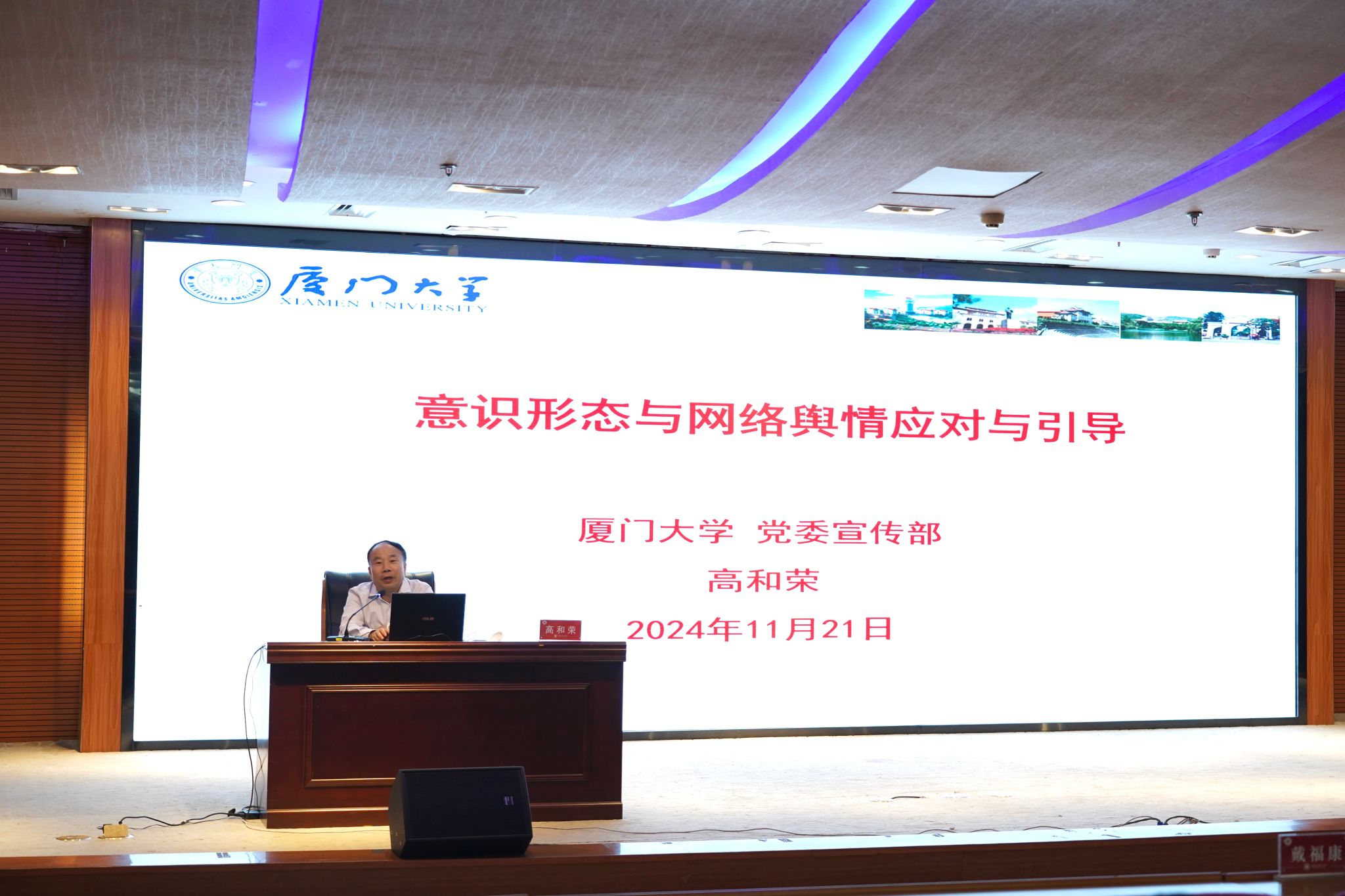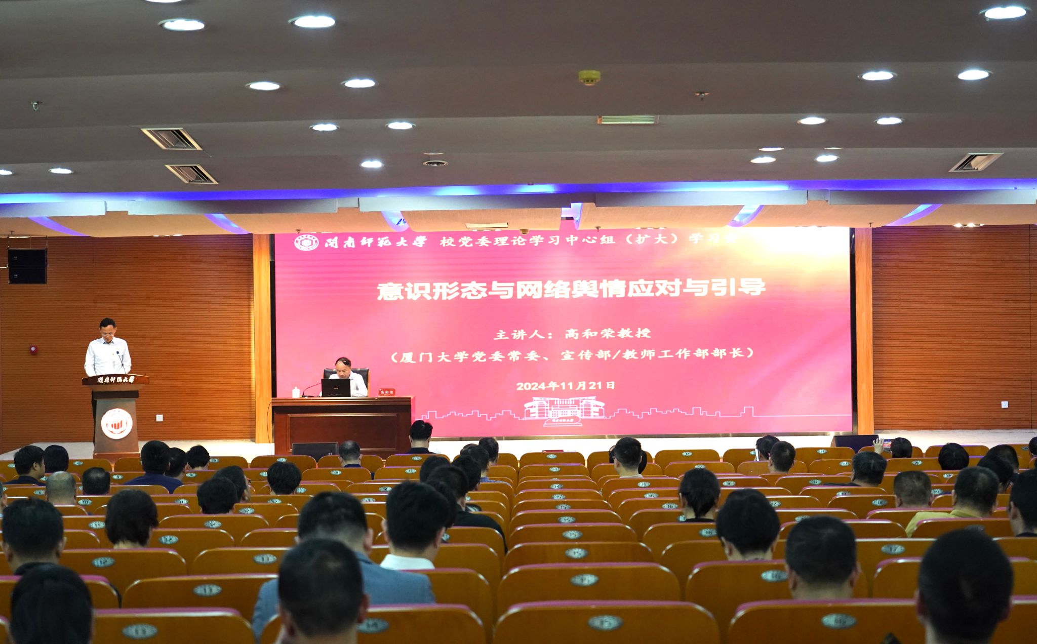 11月21日下午,校黨委召開理論學習中心組(擴大)學習會,邀請廈門大學黨委常委、宣傳部/教師工作部部長高和榮教授作題為《意識形態與網絡輿情應對與引導》的專題輔導報告。全體在家校領導,全校中層干部,各學院教工黨支部書記、輔導員參加。會議由校黨委書記、校長李順興主持。