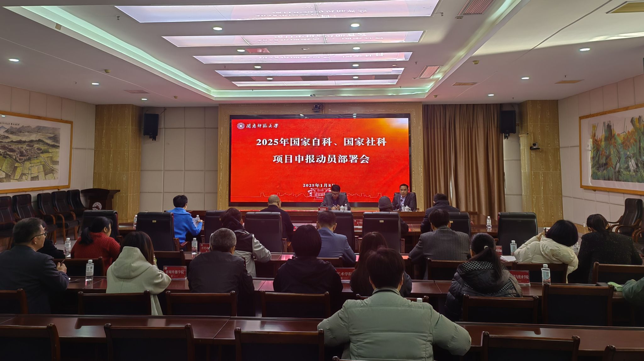 1月8日,我校在科技信息樓1607會議室召開2025年國家哲學社會科學基金和自然科學基金項目申報動員部署會。校黨委常委、副校長林耀進出席,各學院分管科研工作的領導、科研秘書及科研處相關人員參加。會議由科研處處長林福財主持。