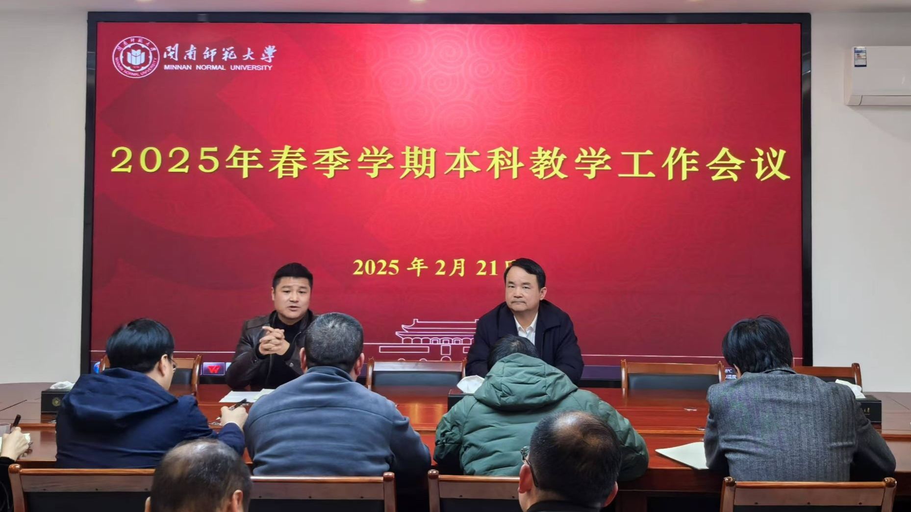 2月21日下午,我校在科技信息樓1507會議室召開2025年春季學期本科教學工作會議。校黨委副書記、校長張龍海出席,各學院分管本科教學工作領導、教務處科級以上干部參加。