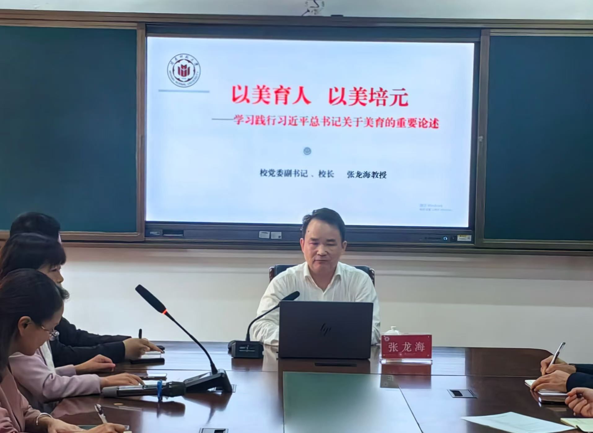 張龍海強調,要將美育融入黨員教育全過程,號召全體黨員用身邊美激勵奮斗美,學會“關鍵時刻站得出、平常日子看得出”的擔當,在學校美育創新工作中書寫“大美育”的先鋒答卷,為教育強國貢獻美育力量。
