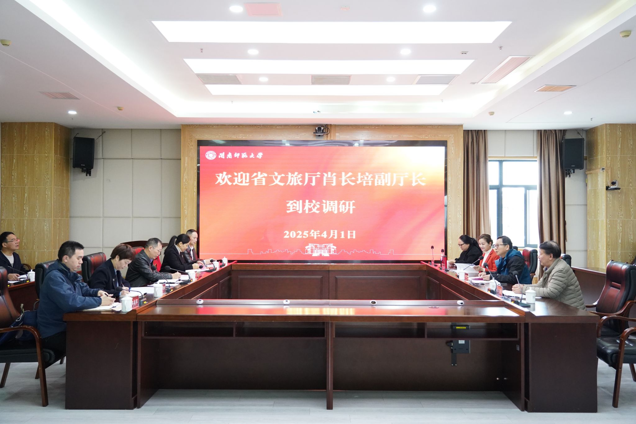 4月1日,福建省文化和旅游廳黨組成員、副廳長肖長培一行來我校考察調研,校黨委副書記、校長張龍海在科技信息樓1605會議室會見來賓。