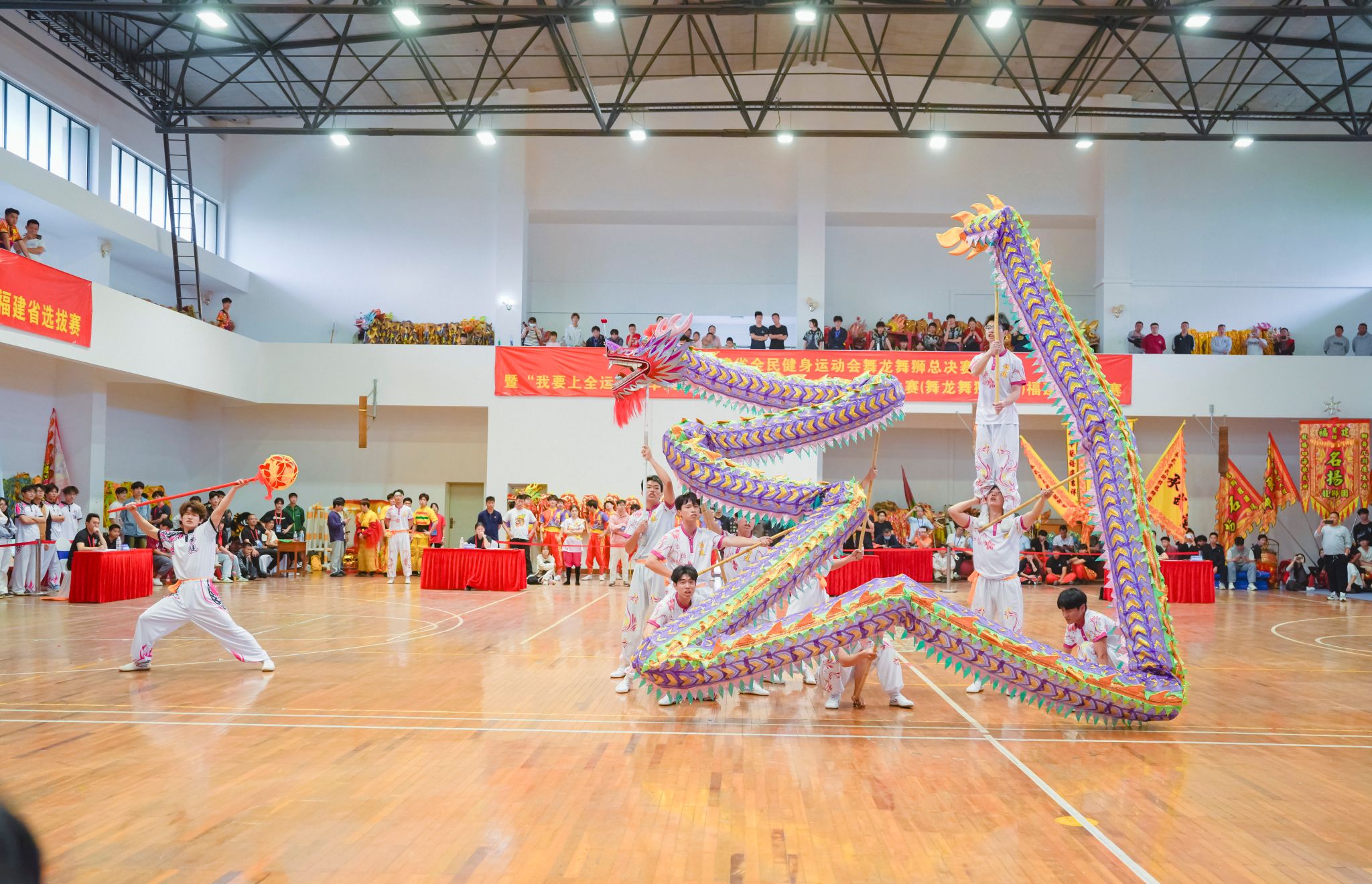 4月12日—13日,由福建省體育局主辦的福建省全民健身運動會舞龍舞獅總決賽暨“我要上全運”中華人民共和國第十五屆全運會群眾比賽(舞龍舞獅項目)福建省選拔賽在集美大學舉辦,來自全省的17支隊伍、259名運動員同臺競技。我校龍獅隊榮獲舞龍規(guī)定套路一等獎、舞龍自選套路一等獎、南獅傳統(tǒng)套路二等獎和南獅障礙套路二等獎,以及大賽“體育道德風尚獎”。