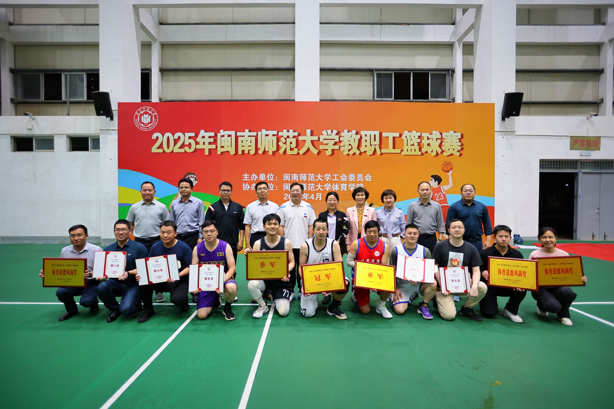 4月27日,2025年閩南師范大學教職工籃球賽落下帷幕。校黨委副書記廖志丹,校黨委常委、副校長何紹福出席閉幕式,并為獲獎代表頒獎。