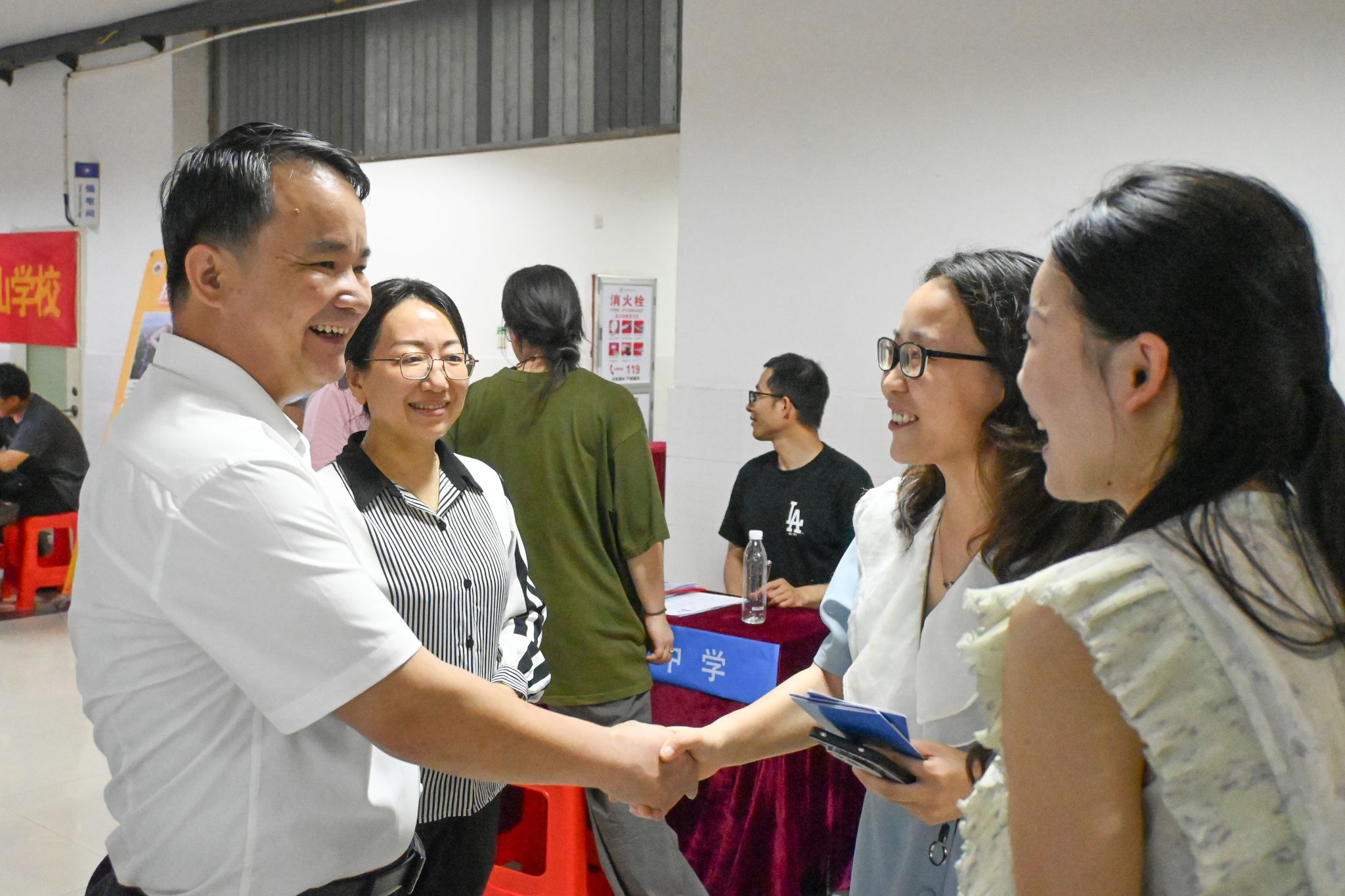同日,深圳市寶安區(qū)教育局以及轄區(qū)8所民辦學(xué)校代表來校調(diào)研交流。調(diào)研期間,雙方聯(lián)合舉辦專場宣講會,在創(chuàng)業(yè)樓微格教室組織招聘活動,現(xiàn)場發(fā)布就業(yè)崗位78個,促成30人達(dá)成初步簽約意向。