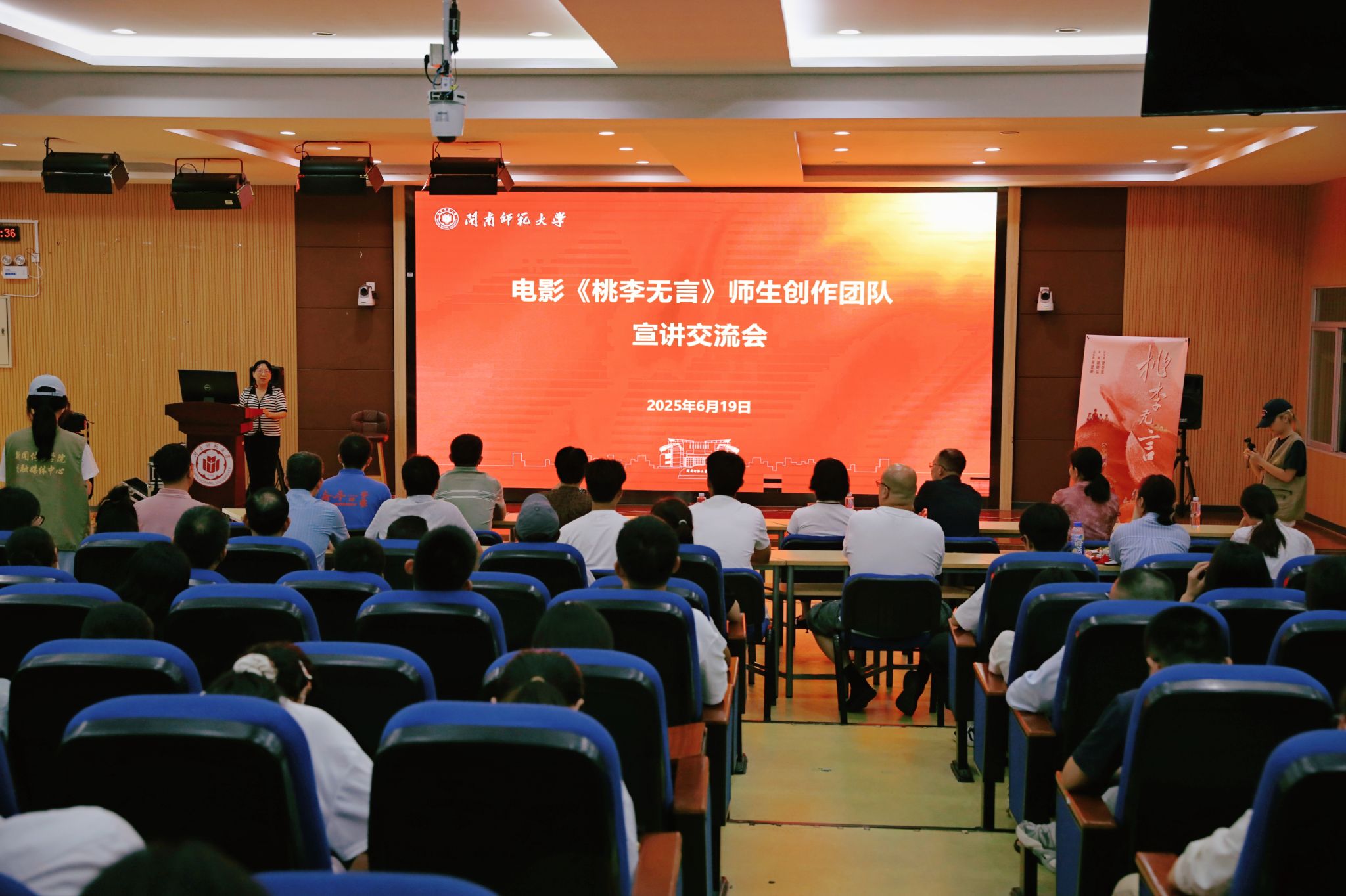 6月19日,我校在礪志樓120會議室組織《桃李無言》師生創作團隊宣講交流會暨觀影活動。校黨委副書記廖志丹主持活動并作總結發言。