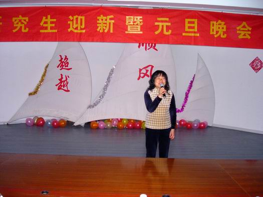 陳書記在晚會上作新年獻辭。她回顧了過去一年學校各項事業所取得的成就,充分肯定了研究生在學校改革發展中所起的重要作用,并強調了本科教學工作水平評估對學校的影響及如何迎評促建等問題。她希望作為學院精英分子的研究生,應當主動承擔起相應的責任,發揮應有的表率作用,為學院的評估出謀劃策,多做貢獻,并借此辭舊迎新之際代表院黨委和行政向各位導師和全體研究生拜年!