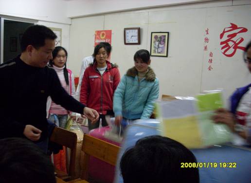 在院學(xué)工部及生物系黨總支領(lǐng)導(dǎo)的關(guān)心和指導(dǎo)下, 2008年1月19日,生物系團(tuán)委組織開展了“冬季送溫暖”活動。