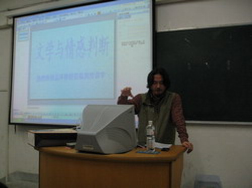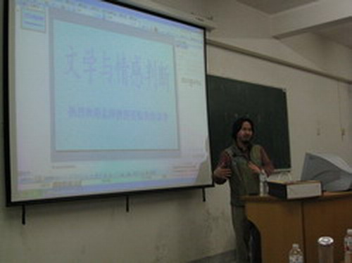 孟教授就林語堂的作品以何種立場向世界傳播中國文學(xué)為切入點(diǎn),淺談了文學(xué)與情感的關(guān)系。他指出,文學(xué)是從審美開始到審美結(jié)束的過程,興于詩、立于禮、成于樂。他認(rèn)為人的情感主要有三種:政治情感、倫理情感和愛情,并分別就電視劇《康熙王朝》、王朔的《致女兒書》、朋友女兒的《十七跋》,針對以上觀點(diǎn)做了詳細(xì)且生動的闡釋。