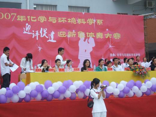 為迎接本科教學(xué)工作水平評(píng)估,豐富同學(xué)們的課余生活,增強(qiáng)同學(xué)們的團(tuán)隊(duì)意識(shí),調(diào)動(dòng)全系學(xué)生“迎評(píng)促建”的積極性和主動(dòng)性,11月25日下午3:00,由化學(xué)與環(huán)境科學(xué)系團(tuán)委舉辦的“迎評(píng)促建”迎新集體舞大賽決賽在達(dá)理學(xué)生活動(dòng)中心隆重舉行。化學(xué)與環(huán)境科學(xué)系主任李順興、黨總支書記黃森科、副書記蔡文聯(lián)及全體輔導(dǎo)員出席了本次大賽。藝術(shù)系及體育系劉利鑫、張偉明、朱秀芳三位老師擔(dān)任了本次比賽的評(píng)委。