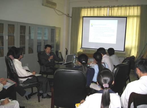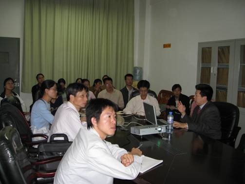 余軍教授1981年畢業于南京氣象學院數學系,1983年赴美,在美國獲博士學位;現任美國佛蒙特大學工程與數學學院副院長,數學與統計系副主任,分管科研工作,在將微分方程應用于海洋、航天衛星、地理等領域的研究上取得了突出成就。在本次報告會上余教授詳細介紹了他的最新研究成果,并對目前微分方程的最新應用進行了精辟的闡述。在場的老師和同學都被余教授的博學及生動精彩的報告所吸引,并就報告的內容進行了廣泛的討論交流。