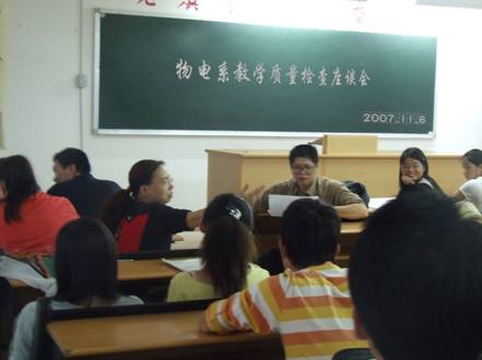 11月8日下午四點,物電系07/08學年度期中教學檢查學生座談會在博文樓拉開帷幕。系領導周小方、張躍聰、馬如康、莊榕榕等十分重視此次教學質量檢查并參加了會議。各教研室主任、各年級輔導員、班主任及學生代表以年級為單位會聚一堂,圍繞學生學習、教師教學、實驗及實踐等問題進行了深入的交流和熱烈的討論。