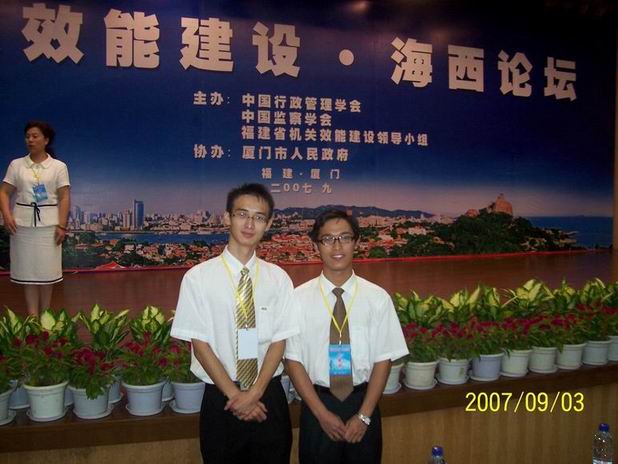 在9月3日下午的主題發(fā)言中,福建省政府秘書長馮聲康及來自全國各學(xué)術(shù)機(jī)構(gòu)的專家、學(xué)者分別從理論與實(shí)踐的結(jié)合上,闡述了建設(shè)效能政府對推進(jìn)行政管理創(chuàng)新、增強(qiáng)政府執(zhí)行力和公信力的積極意義。張清華和林波同學(xué)作為我院代表,共同參與了分組討論。
