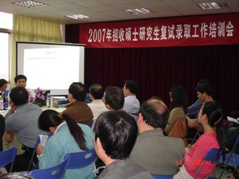 2007年研究生招生復(fù)試工作已進(jìn)入準(zhǔn)備階段,將有近60名考生參加此次復(fù)試。為進(jìn)一步推進(jìn)研究生復(fù)試工作的科學(xué)性、公平性,正確貫徹實(shí)施教育部《關(guān)于研究生招生復(fù)試工作的指導(dǎo)性意見》文件精神,我院研究生處于4月11日召開研究生招生委員會(huì)工作會(huì)議,會(huì)議傳達(dá)學(xué)習(xí)了2007年全國研究生招生工作的有關(guān)精神,討論決定我院2007年碩士研究生招生指標(biāo)的分配方案及復(fù)試錄取辦法。4月17日下午,研究生處舉行了“2007年招收碩士研究生復(fù)試錄取工作培訓(xùn)會(huì)”,此次培訓(xùn)會(huì)由研究生處處長黃金明主持。黃處長就近幾年來全國研究生招生制度改革情況和我院研究生招生工作現(xiàn)狀進(jìn)行了全面分析和介紹;招生科科長蔡如興就2007年研究生復(fù)試工作應(yīng)當(dāng)注意的幾個(gè)問題進(jìn)行了講解;培訓(xùn)人員還對南開大學(xué)、浙江大學(xué)等院校的復(fù)試情況進(jìn)行了影像觀摩。此次培訓(xùn)主要是針對各招生系的研究生工作主管領(lǐng)導(dǎo)、各系復(fù)試工作小組成員、專業(yè)復(fù)試小組成員和參與復(fù)試的工作人員。