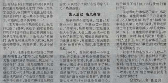 4月3日《閩南日報》有關(guān)獻(xiàn)身農(nóng)村教育事業(yè)的殘疾教師阮文發(fā)先進(jìn)事跡的報道,在我院廣大師生間引起了強(qiáng)烈的反響。4月4日下午,我院政工干部、學(xué)生舉行了座談會。院黨委書記陳永紅和副書記林春生到會,傾聽師生們的肺腑之言。