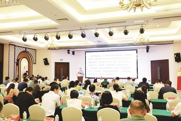 關(guān)帝文化學(xué)術(shù)研討會(huì)現(xiàn)場,專家學(xué)者作交流發(fā)言。(李林 攝)