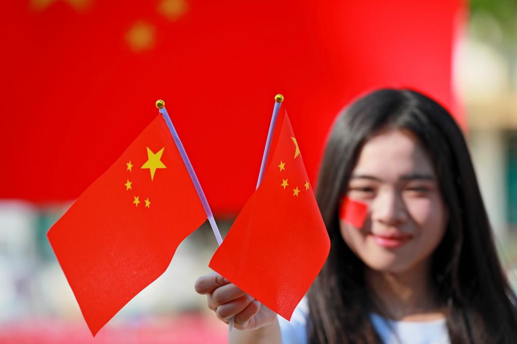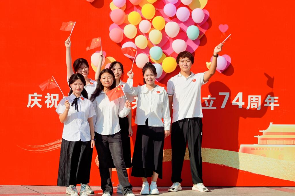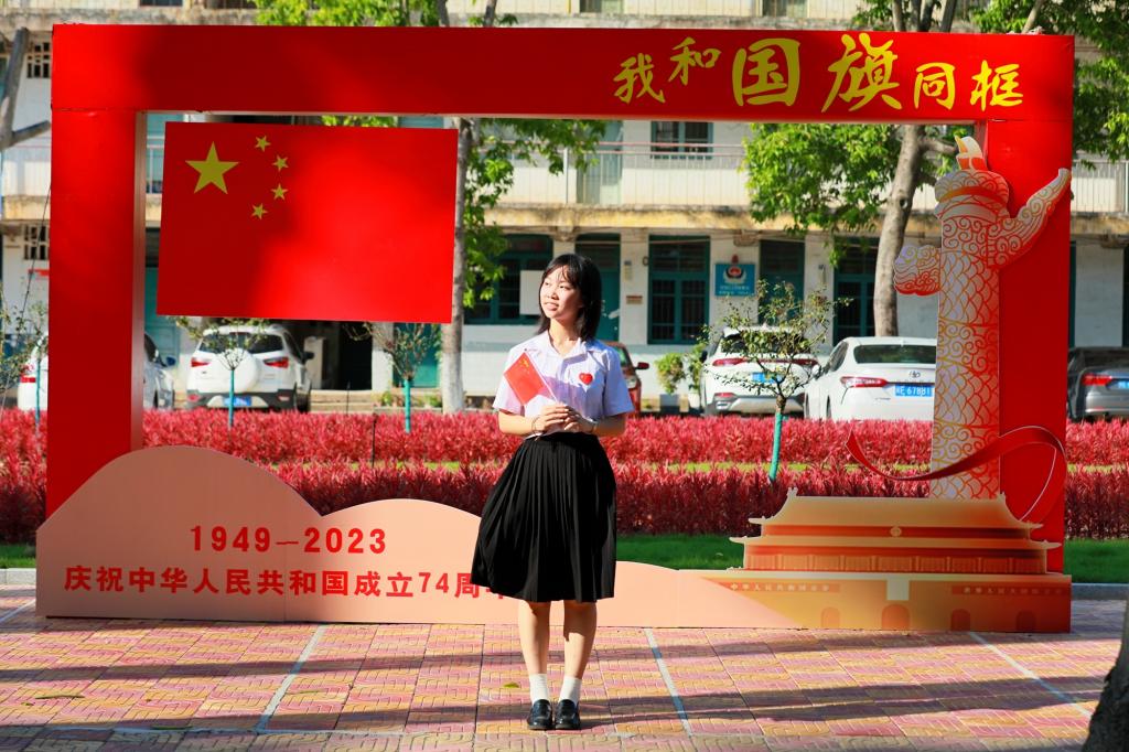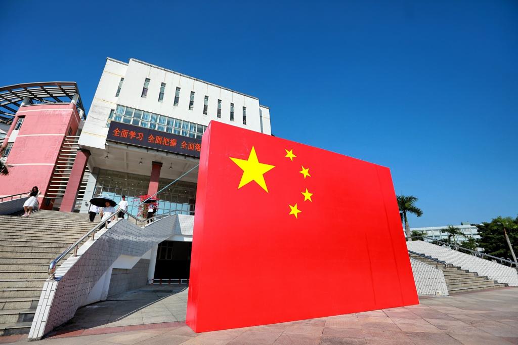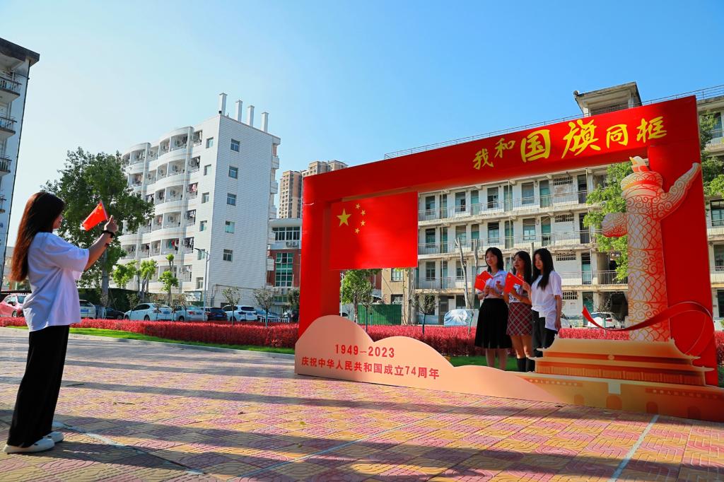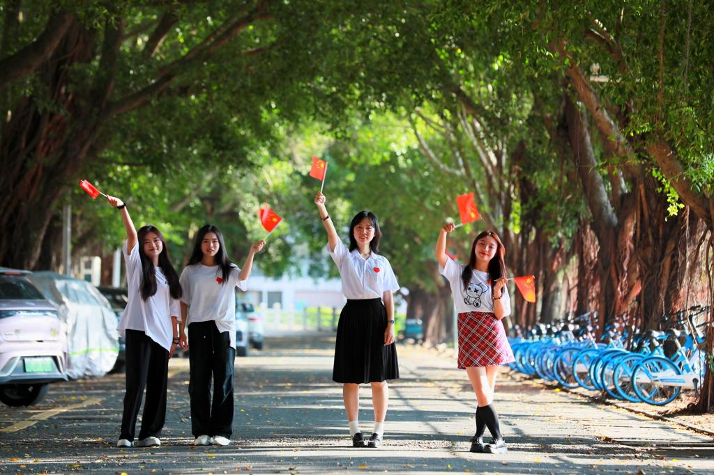 國慶節到來之際,閩南師范大學校園里各處紅旗招展,洋溢濃厚節日氛圍。閩南師大學子在校園里與國旗同框留影,用實際行動喜迎國慶。(董征 攝)