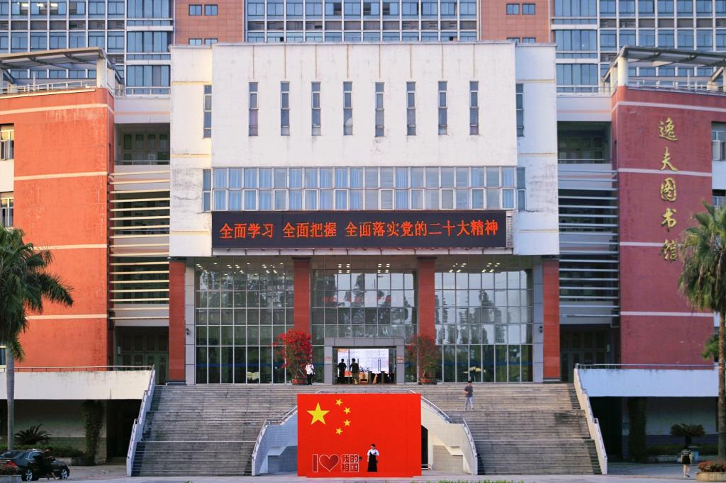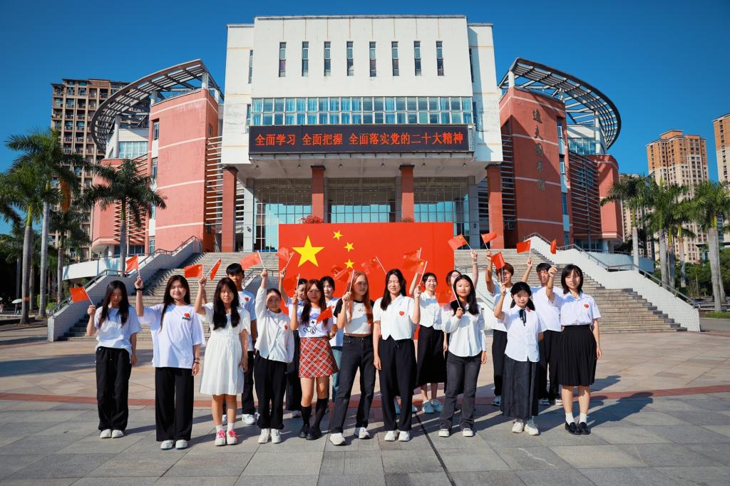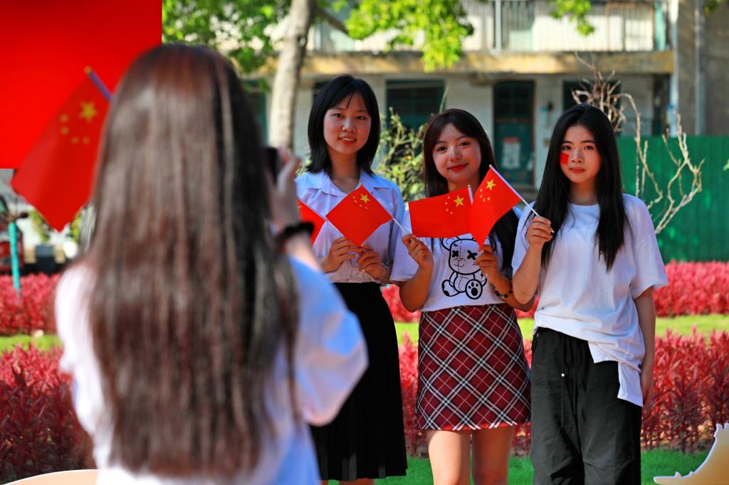 閩南師大學子與國旗同框(王艾嘉 攝)