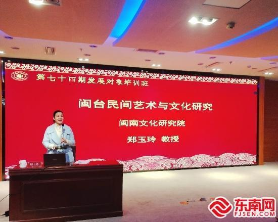 在《閩臺民間藝術與文化研究》課堂上,伴隨著閩南師大鄭玉玲教授抑揚頓挫的閩南音,近300名發展對象一起模仿練習全國非物質文化遺產泉州“拍胸舞”和臺灣宜蘭歌仔戲舞蹈元素“打七響”。黨課設計以習近平文化思想為主線,貫穿閩臺舞蹈藝術和相關民間文化,青年學子在知、學、行、練的沉浸式體驗中,把優秀傳統文化“根脈”和馬克思主義理論“魂脈”融于一身。師生間教學相長引導青年學子堅定文化自信、厚植家國情懷,把牢黨員發展入口關。