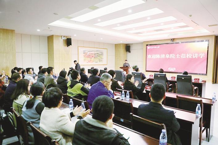 報告前,校領導親切會見陳清泉院士。與會人員共同觀看央視專題片《香江永奔流》,感受陳清泉院士報效家國的赤誠之心。活動現場還舉行首席名譽教授頒發儀式,為陳清泉院士頒發證書。