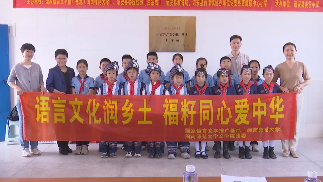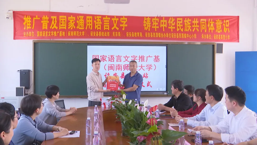 為進一步推廣普及國家通用語言文字,鑄牢中華民族共同體意識。3月26日上午,由漳州市詔安縣委統戰部(民宗局)、閩南師范大學文學院、國家語言文字推廣基地(閩南師范大學)主辦的國家語言文字推廣基地(閩南師范大學)詔安縣工作站揭牌暨捐贈儀式在美營小學舉行。