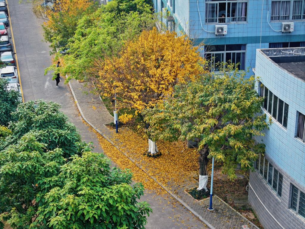 南方校園里,落葉飄零的春天。
