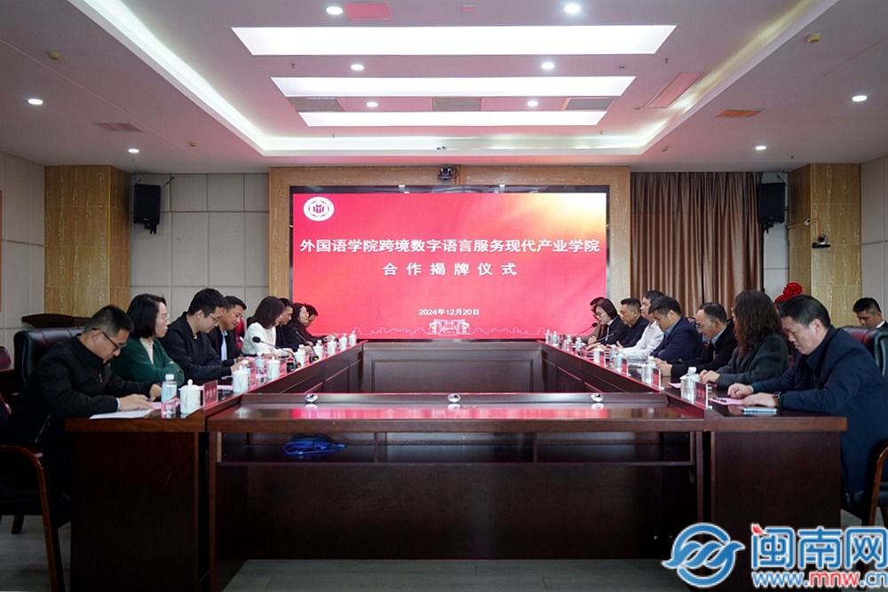 閩南網12月24日訊(通訊員 陳凌弘 汪嘉怡 閩南網記者 周怡楠 文/圖)近日,閩南師范大學外國語學院跨境數字語言服務現代產業學院揭牌儀式在閩南師范大學科技樓1607會議室舉行。閩南師范大學黨委常委、副校長張龍海出席。
