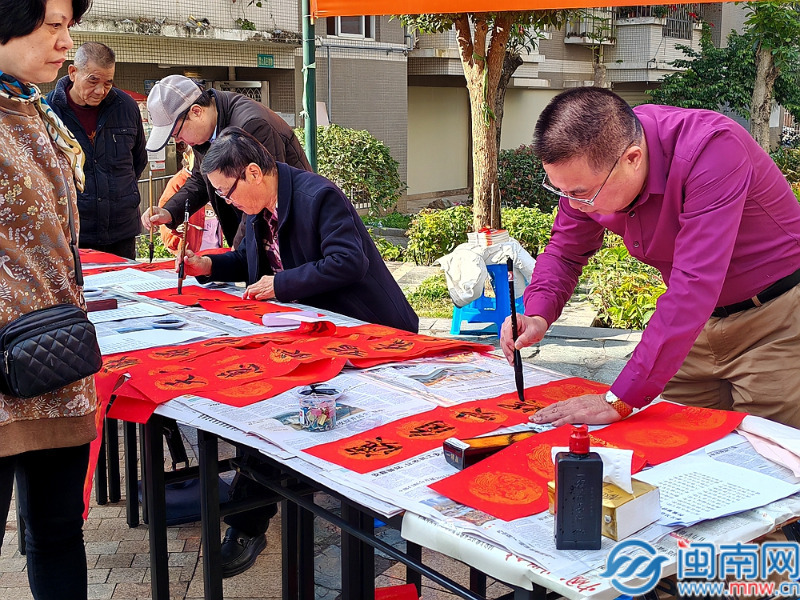 閩南網1月15日訊(通訊員 蔡毅強 張寧 閩南網記者 周怡楠 文/圖)為迎接新春佳節的到來,展現“千年漳府 文化名城”的魅力,1月15日上午,閩南師范大學馬克思主義學院教師黨支部與薌城區芝山街道惠民社區黨總支共同舉辦“踐行習近平文化思想——惠民迎新春寫春聯暨科普進社區活動”。