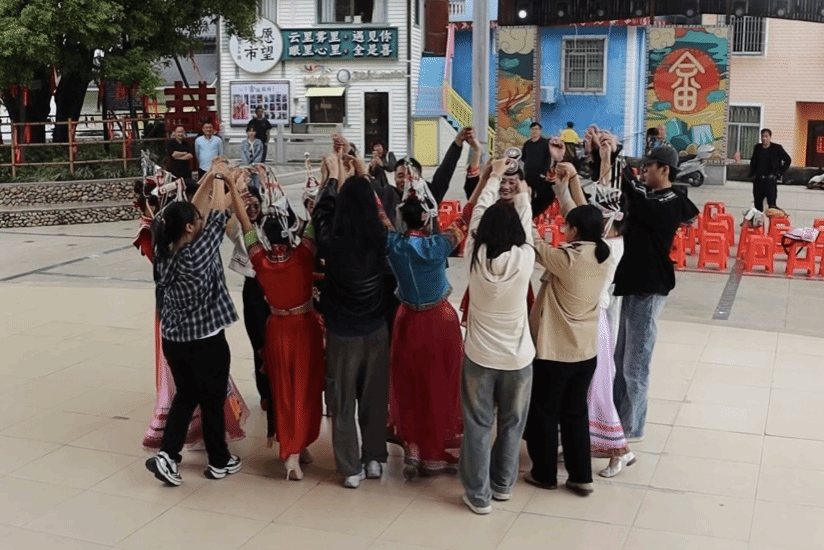 隨后,學生們走進了畬族聚居村寨——新圩鎮官畬村。在這個全國鄉村旅游重點村,畬族同胞們身著色彩鮮艷、圖案精美的民族服飾,跳起了熱情奔放的畬族舞蹈,以畬鄉獨有的方式迎接遠道而來的客人。大學生們被邀請加入舞蹈隊伍中,與當地畬族同胞手拉手跳起了竹竿舞,甩起了大陀螺,歡聲笑語匯成一片。