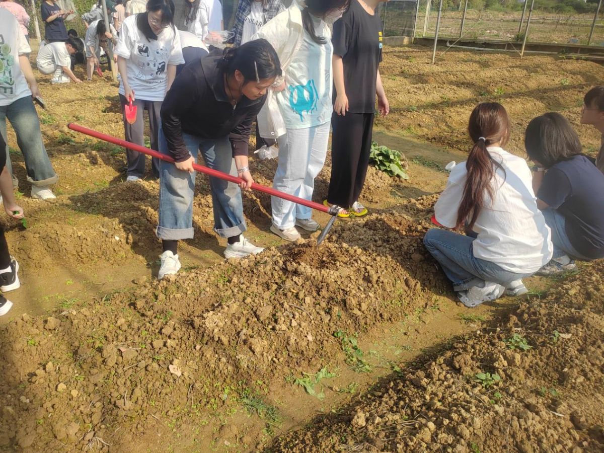 在講解示范后,各小組依次領取勞動工具套裝,協同完成破土儀式。每一鋤、每一鏟都象征著同學們與土地的對話,傳承的是對勞動價值的深切體悟,既開啟了春耕序章,又在年輕學子心中播下了尊重勞動、熱愛土地的種子。