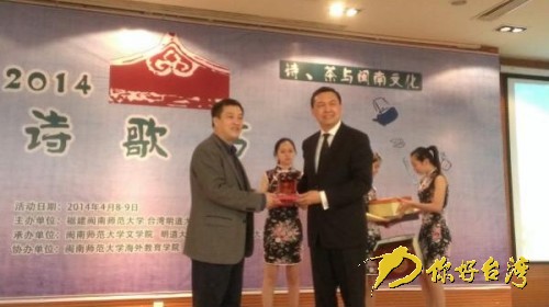 你好臺灣網廈門4月9日消息(記者 吳婉瑜) 4月8日,「詩、茶與閩南文化」2014閩南詩歌節大型文化交流活動在閩南師範大學舉行,來自海峽兩岸的30多位詩人、學者與表演藝術家歡聚一堂,以茶、詩歌、閩臺語緣、閩南風俗民情為主軸進行廣泛的對話與交流,廈門大學、閩南師大學子及對閩南文化有興趣的當地市民將共饗這一文化盛宴。